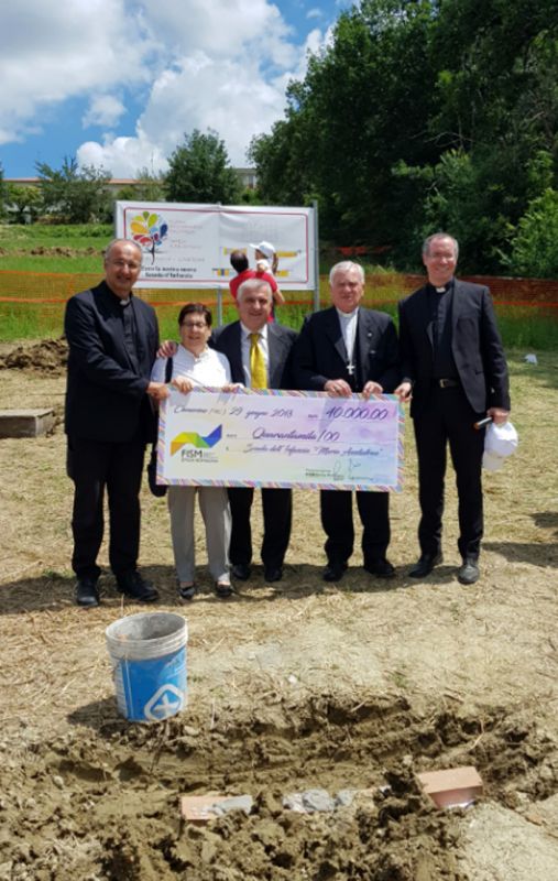 Ora, grazie alla solidarietà di tanti, nell’area del quartiere di Fonte San Venanzio (delocalizzata rispetto al centro storico) sorgerà il nuovo edificio di circa 350 metri realizzato, con una struttura di acciaio in classe "A" perfettamente antisismica, grazie alla donazione della onlus cattolica che fa capo all’imprenditore cremonese Giovanni Arvedi.