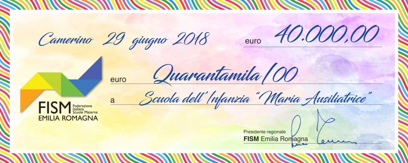 «La solidarietà, l’amicizia, lo scambio di relazioni, sono valori fondamentali da trasmettere nella formazione dei bambini» queste sono state le parole del Presidente Iemmi «e rappresentano ciò che le scuole FISM hanno inteso ribadire partecipando all’iniziativa di solidarietà, permettendo ai bambini e alle bambine delle scuole FISM Emilia Romagna di contribuire con una piccola ma significativa moneta ad aiutare i bambini del Comune di Camerino nella ricostruzione della scuola distrutta dal terremoto e dare così consistenza a un tetto e a una speranza di rinascita».